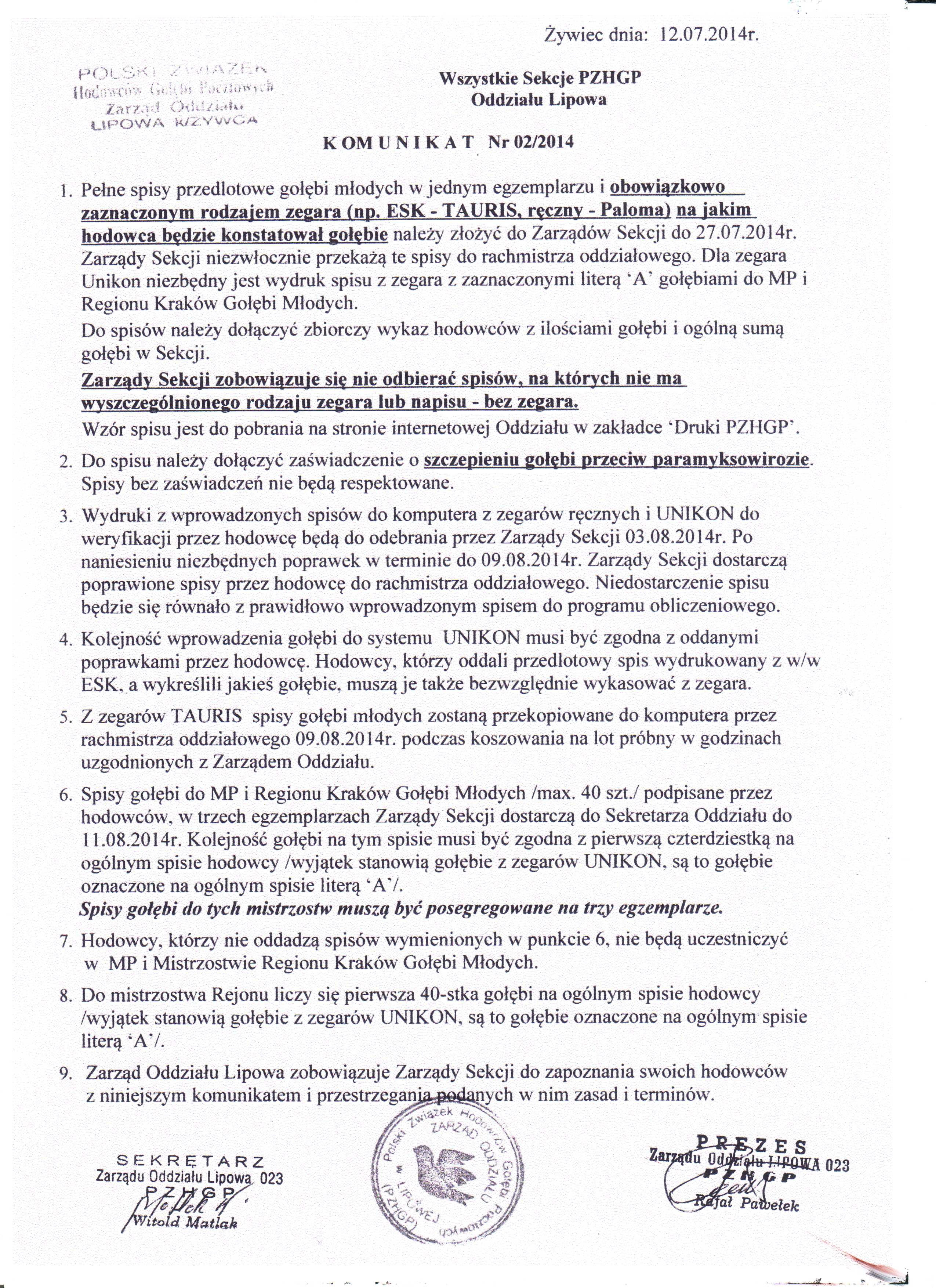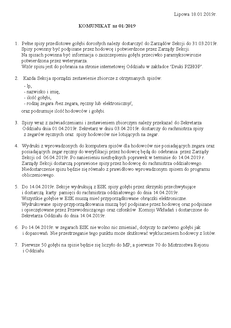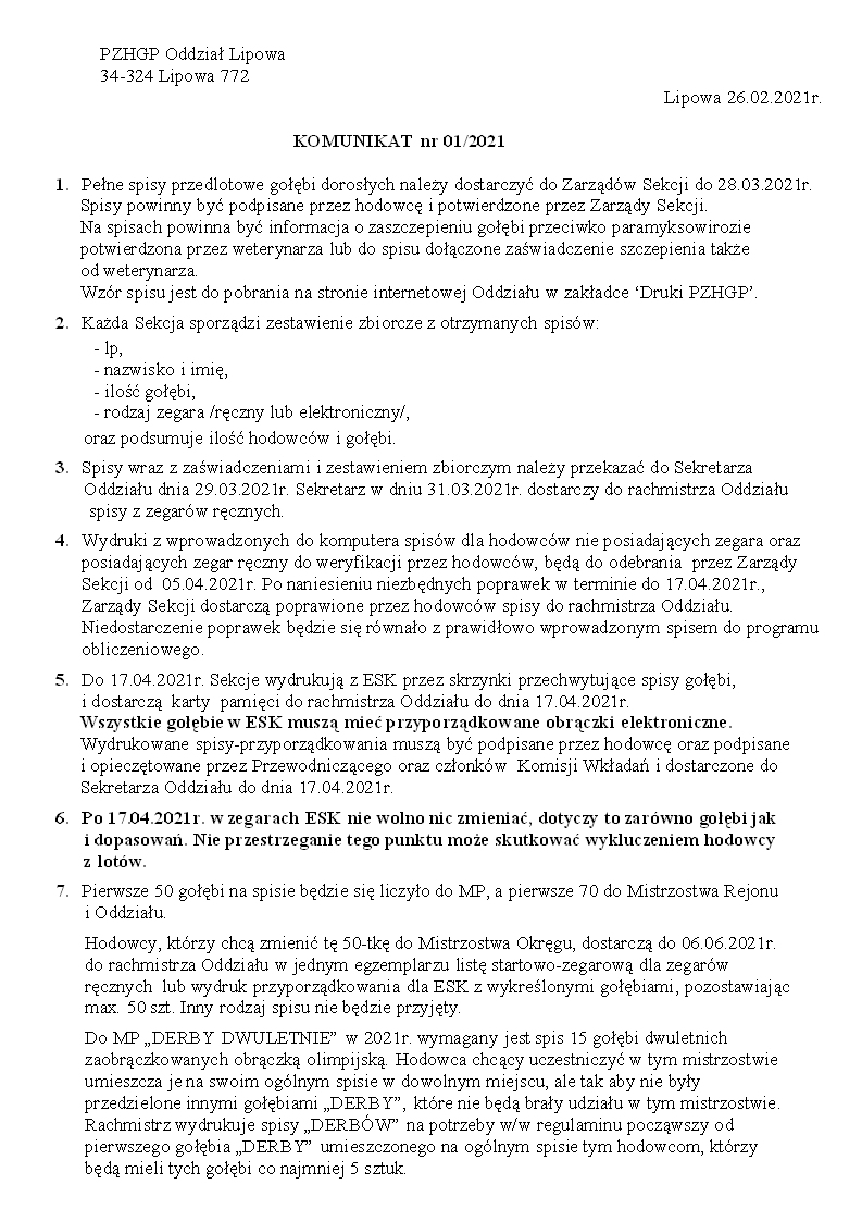 Komunikaty ZG i Regionu.